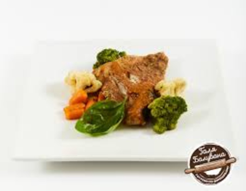Качина ніжка конфі з запеченим гарбузом та сирним соусом